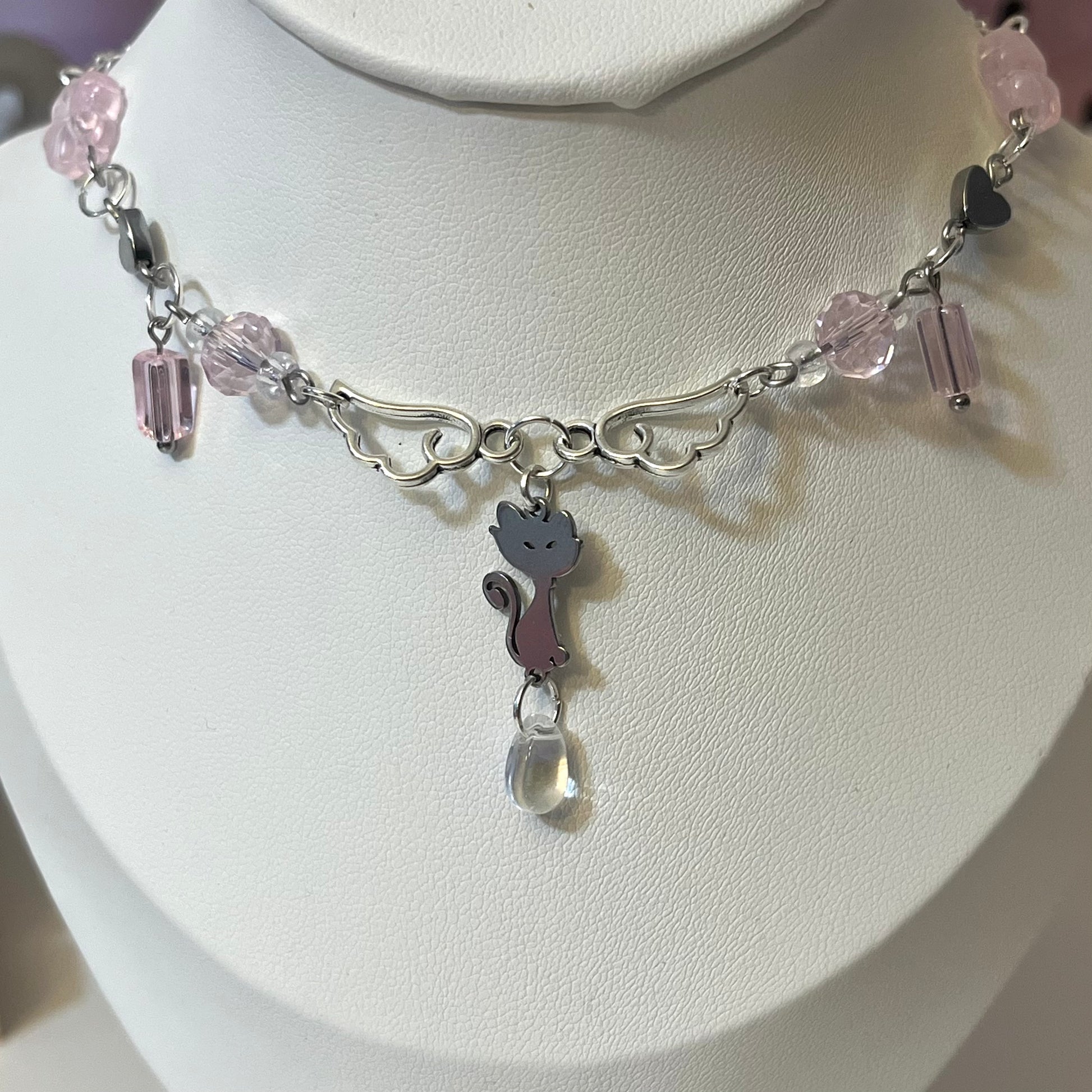 Pink Silver Kitty necklace! ~choker style~