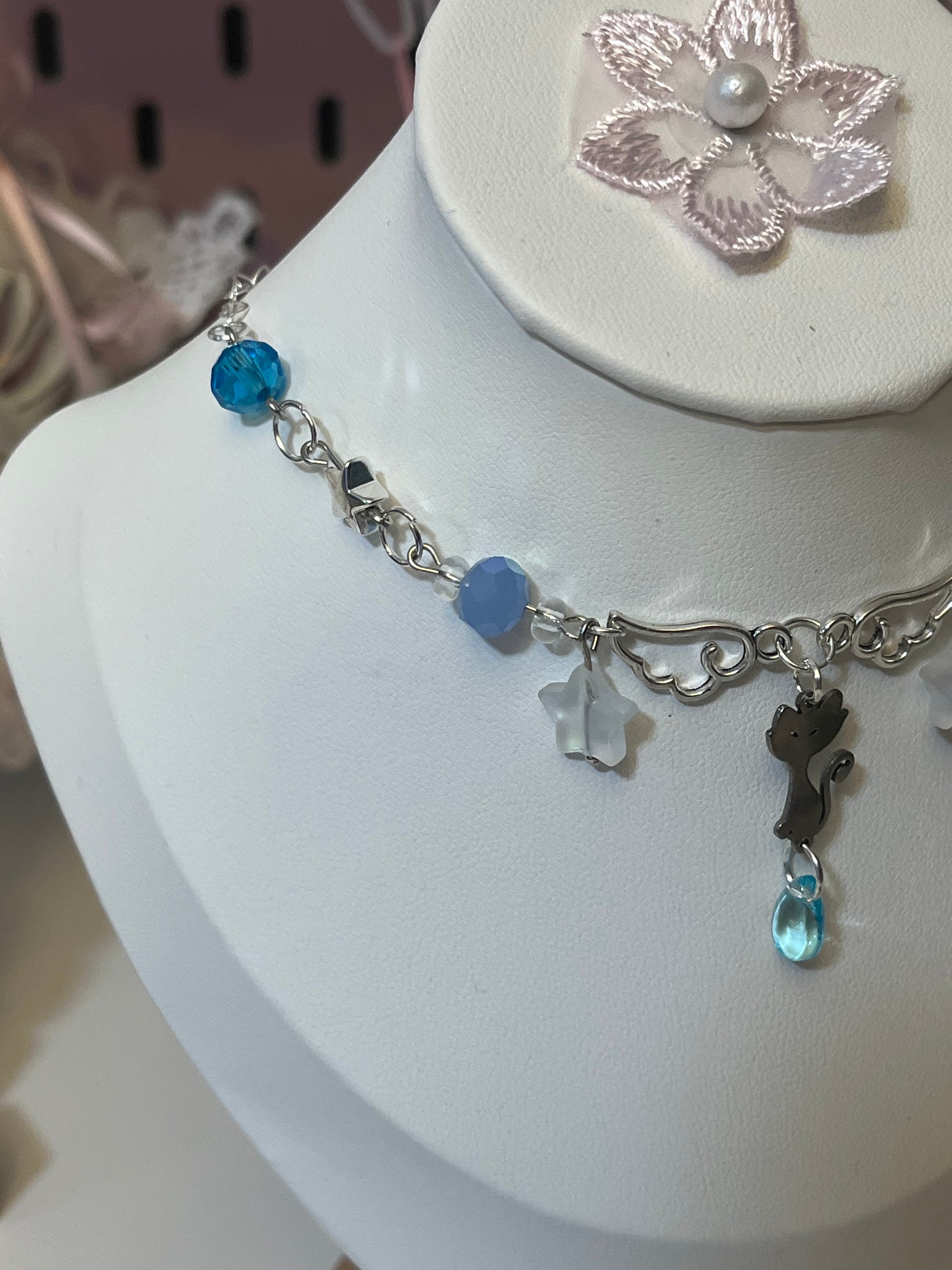 Blue Silver Kitty necklace! ~choker style~
